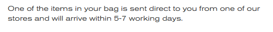 If your order (or part of your order) is being shipped from one of our stores, you’ll see this message at checkout: